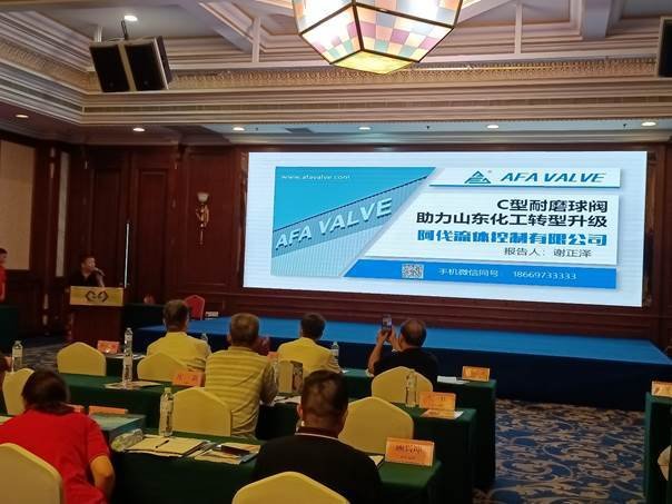 AFA公司董事长谢正泽先生在论坛上作了《金属硬密封C型耐磨球阀助力山东化工转型升级》专题报告,详细介绍了AFA公司金属硬密封C型耐磨球阀研发经历、核心技术优势以及在化工领域广泛的应用业绩,强调了该产品对于化工企业实现生产运行 “安稳长满优”的重要作用。